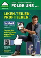 Bei Ihrem nächsten Besuch im UNSER LAGERHAUS Innsbruck werden Sie als UNSER LAGERHAUS Innsbruck Facebook-Fan mit einem kleinen Geschenk überrascht – Fan werden und vorne sein!