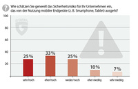Während generelle Risiken von einigen Firmen ignoriert werden, bedeutet ein Verlust oder Diebstahl des mobilen Begleiters für mehr als acht von zehn Unternehmen eine hohe oder sehr hohe Wahrscheinlichkeit eines Schadens.