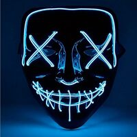 Eines der herausragenden Merkmale dieser LED-Gruselmaske ist ihre leuchtend blaue Farbe. Der intensive Farbton erzeugt einen unheimlichen und mysteriösen Effekt, der überall für Aufsehen sorgt. Ganz gleich, ob Sie den kultigen Purge-Filmen nacheifern oder sich einfach von der Masse abheben wollen, diese Maske ist die ideale Wahl.