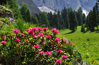 In diesen Tagen erwarten wir die ersten sommerlichen Temperaturen um die 30°C. Da zieht es uns hinauf in die beschauliche Welt der Meraner Berge und eben dort, setzt in diesen Tagen die Alpenrosenblüte ein. Ganze Teppiche dieses immer grünen Strauches mit buschigem Wuchs sind anzutreffen und das auf Höhen von 500 bis 2.800 m. Die Alpenrose gehört zur Gattung der Rhododendren und zur Familie der Heidekrautgewächse. Es ist ihr gleich, wenn es da oben karg und trocken ist, Hauptsache der Boden ist sauer und nicht kalkhaltig. Die purpurroten, glockenförmigen Blüten hängen zahlreich auf den bis zu einem Meter hoch werdenden Pflanzen. Es ist ein wahres Naturschauspiel, wenn sich die Berghänge in leuchtendes Rot/Pink tauchen – da hält man gerne inne und lässt sich die Sinne streicheln.
