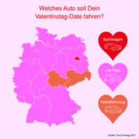 KÖLN, 13. Februar 2017 Für die Generation der heute 18- bis 34-Jährigen, den sogenannten Millennials, ist die automobile Begeisterung ungebrochen. Mobilität ist der jungen Generation im Alltag besonders wichtig und das Auto nach wie vor ein Ort sozialer Interaktion mit Freunden, Familie aber auch dem Partner. Zum Valentinstag hat der Automobilhersteller Ford stichprobenartig Millennials aus ganz Deutschland befragt, welche Rolle das Auto in der Liebe spielt und herausgefunden, dass besonders Berliner für ihr Date am Valentinstag ganz eigene Vorlieben haben. Ford untersucht seit Langem das Verhältnis der Generation Y zu Mobilität und hat zusammen mit dem renommierten Zukunftsinstitut zu diesem Thema die Automotive Zeitgeist Studien 2013, 2014 und 2015 veröffentlicht.