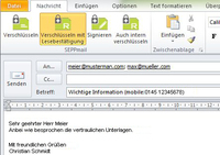 Möchte ein Mitarbeiter eine E-Mail samt Anhang mit sensiblen Firmendaten an einen Geschäftspartner schicken, garantiert ihm SEPPmail GINA die diskrete Behandlung des Inhalts. Vor dem Versand der Nachricht, kann er diese als „vertraulich“ kennzeichnen. Die E-Mail wird automatisch verschlüsselt und vollständig versendet. Dabei wird der Inhalt weder in pdf, zip oder exe konvertiert. Der Empfänger muss sich nun einmalig am SEPPmail-System anmelden und kann die geschützte Nachricht mittels Passworteingabe für das Lesen freischalten. Somit bietet SEPPmail GINA Unternehmensleitungen den erforderlichen Schutz diskreter elektronischer Nachrichten sowie eine komfortable Übermittlung – spontan und an Jedermann. Die Bedrohung durch Attacken auf den E-Mail-Verkehr wird dadurch verhindert.