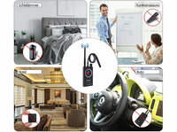Mit dem Spycam- und Wanzendetektor mit Funk-Erkennung (https://www.pearl.de/mtrkw-12108-spycam-und-wanzendetektoren-mit-funk-erkennung.shtml) von VisorTech (https://www.pearl.de/ar-2-81.shtml) schiebt man ungewollter Überwachung einen Riegel vor: RF-Antenne, Magnetfeldsensor und Rotlicht-LEDs des Detektors enttarnen rasch jedes verdächtige Gerät – ob in Umkleidekabine oder Hotelzimmer. Dank breitem Frequenzerkennungsbereich kann der Detektor drahtlose und auch drahtgebundene Überwachungskameras, GPS-Ortungsgeräte und Wanzen per optischen und akustischem Signal entlarven.