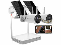 VisorTech 2K-Festplatten-Überwachungsrekorder + 4 Solar-Akku-Kameras, HDMI, App