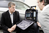 02 Mit dem in einem Trolley eingebauten Mess-System kann das ganze Testprogramm nun auch in Zügen absolviert werden.