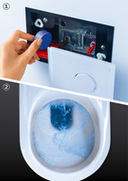 WC-Hygienetabs gehören in den Regalen von Drogerie- und Supermärkten zu den Rennern. Mit dem Spülwasser vermischt, helfen diese Reiniger dabei Ablagerungen an der WC Keramik zu reduzieren – Geruch und Wasserfärbung signalisieren angenehme Frische und sind im Abwasser biologisch abbaubar. Mit dem Aufkommen der Einbauspülkästen entfiel jedoch die Möglichkeit, diese Tabletten unkompliziert im Spülwasser aufzulösen: Der Spülkasten war schlicht unerreichbar in der Vorwandinstallation verschwunden. Es blieb nur das unansehnliche und hygienisch eher bedenkliche Körbchen, das im Spülrand des WCs eingehängt wurde.