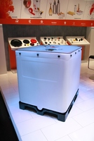 Der Vollkunststoff-IBC ist zu 100% recyclebar und besitzt als Mehrweg-IBC eine hohe Wirtschaftlichkeit. Er gewährleistet höchste Sauberkeit nach GMP und ist geprüft nach VO 10/2011 bzw. 1935/2004.