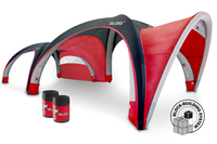 Optisch ist das neue X-Gloo auch weiterhin ein Hingucker: Das schicke aerodynamische Design sowie der schnelle und einfache Aufbau per Luftbefüllung entspricht in Funktion und Qualität dem Original. Ebenso einfach sind die verschiedensten Seitenwände, Zeltverbindungen, Vordächer und Banner mittels Reißverschluss einzippbar. Seitenwände können zudem gewendet und die Personalisierungen auf unterschiedliche Weisen genutzt werden.