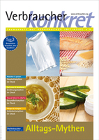 Was von anderen Gerüchten oder Halbwahrheiten rund um Essen, Gesundheit, Haushalt und Kosmetik zu halten ist, beleuchtet die VERBRAUCHER INITIATIVE in dem Themenheft „Alltags-Mythen“. Das 24-seitige Heft kann für 2,00 Euro (zzgl. Versand) unter www.verbraucher.com bestellt bzw. heruntergeladen werden.